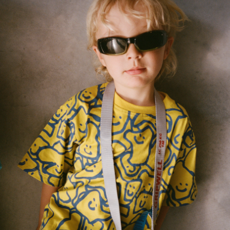 Solid Yellow Rib neckline. Boxy fit