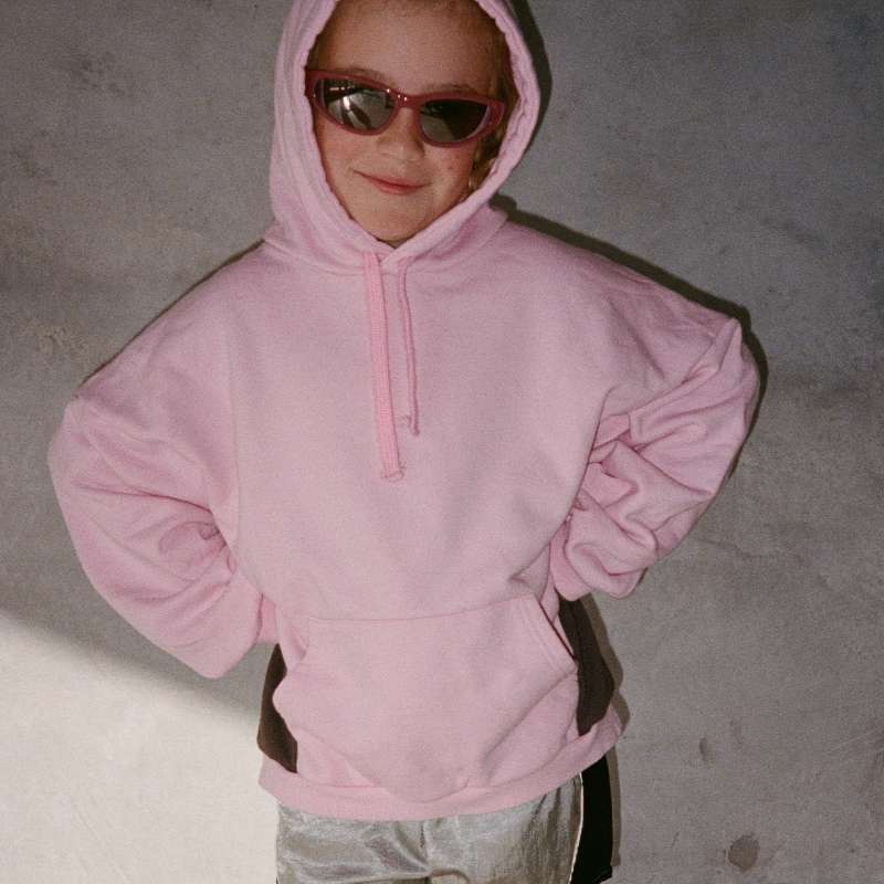 100% Cotton. Boxy Relaxed fit. Pink with dark brown front and back screen print.Â